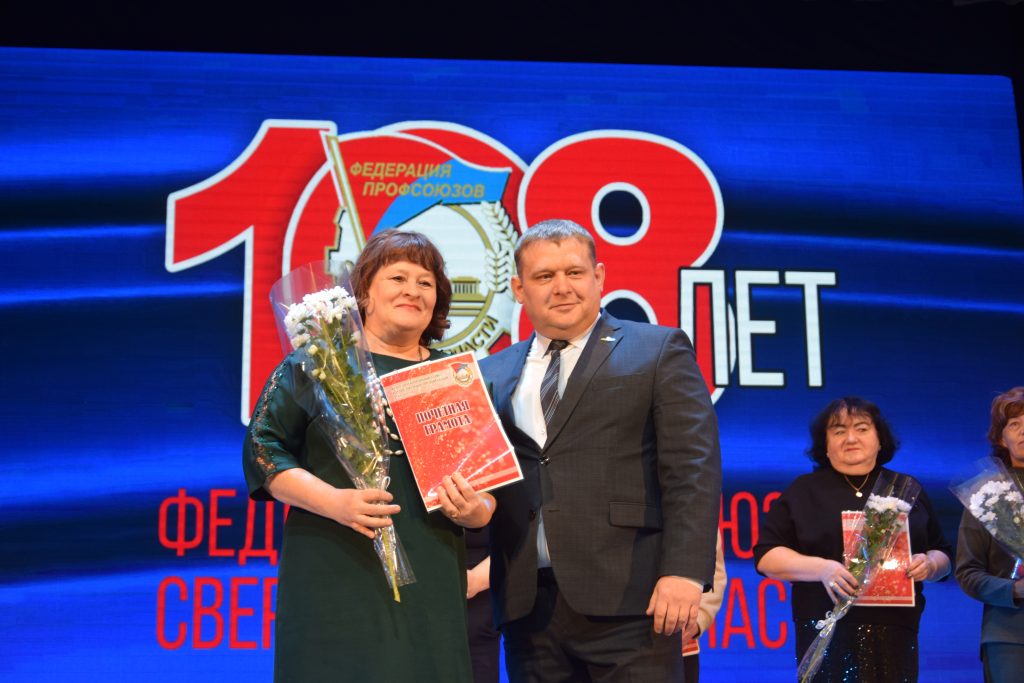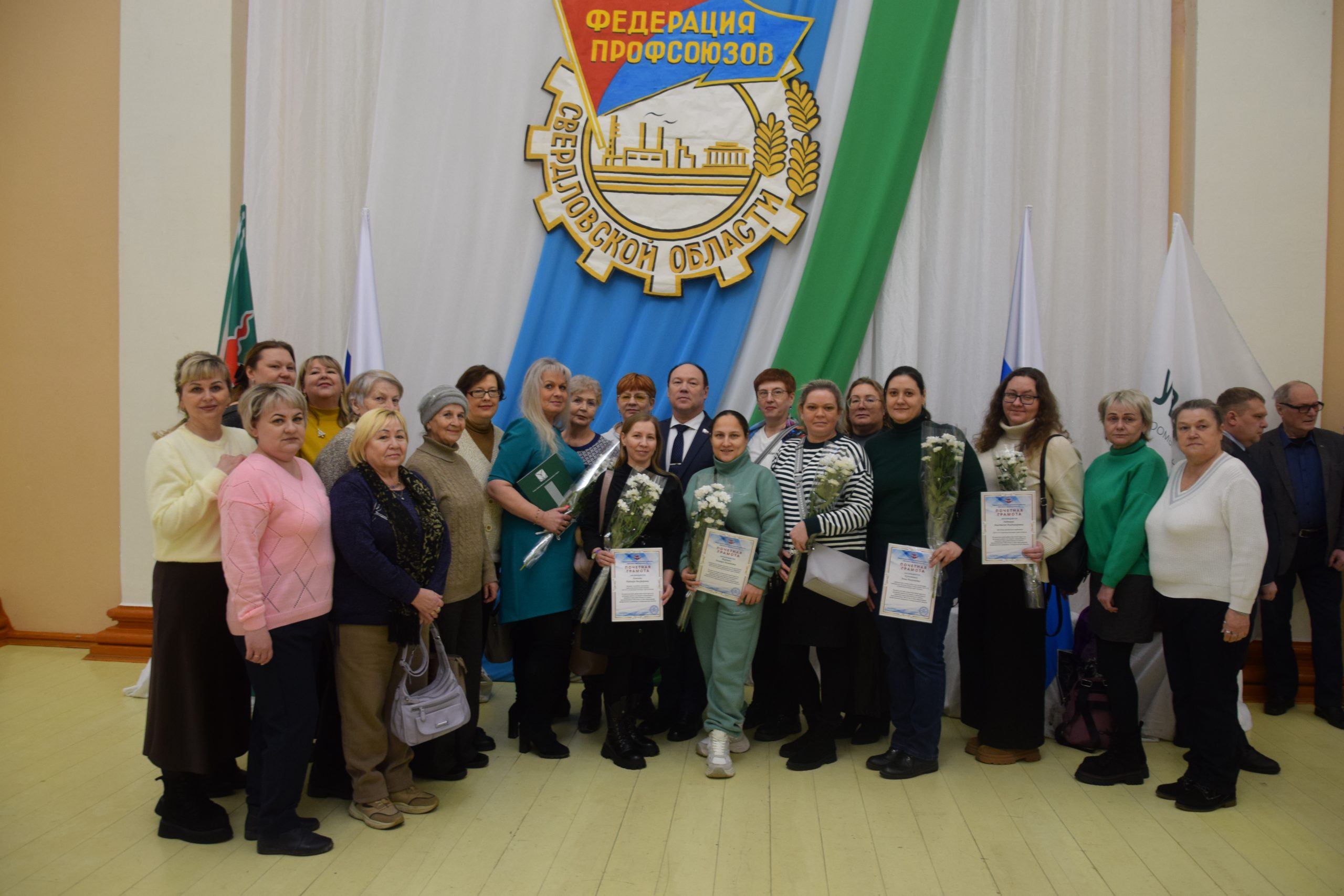 - Делегация профсоюза «Ураласбест» на торжественном собрании к 108-летию профсоюзов Урала